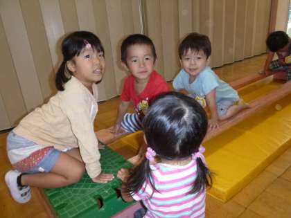 今日は、遊戯室で体を動かして遊びました。