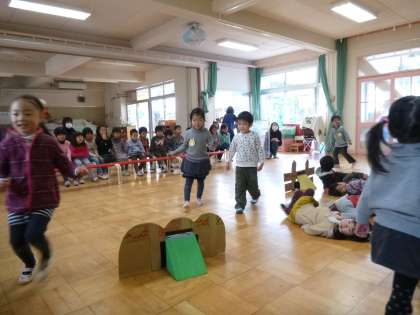 今日は、遊戯室で生活発表会のリハーサルが行われました。