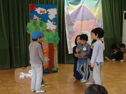 それぞれのクラスの発表を初めて見せてもらった子ども達は、一つ一つの内容を嬉しそうに見ていました。