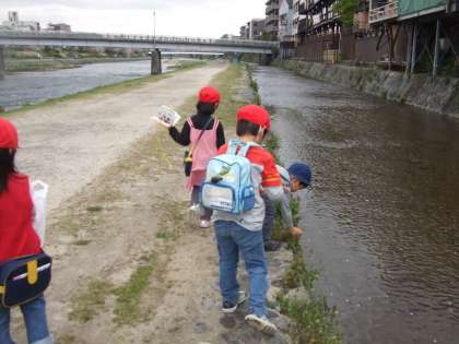 たんぽぽをはじめとする小さな草花もたくさん見つけ,楽しい鴨川散歩となりました。幼稚園に帰ってくるとお留守番していた年中児が「おかえりー!」と迎えてくれました。今度は一緒に行こうね。