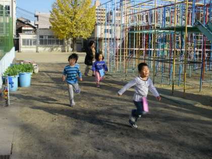 今日から12月。マラソンを始めました。去年のことを知っている年長組がリードし,走り始めました。