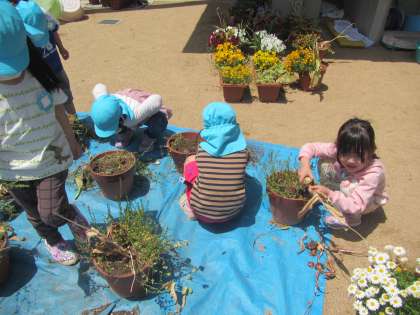 「次は何を植えようかな」,「さくら組の時は,オクラを植えたよ」と,次の栽培活動を楽しみにしています。