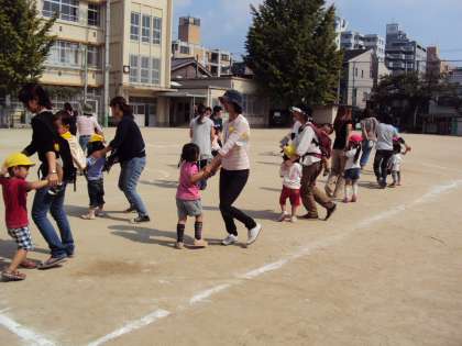 運動会に向けて小学校の運動場を半日貸していただき,予行演習のようなミニミニ運動会をしました。お母さんたちの当日のお手伝いも当日と同じようにしました。