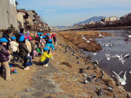 今日は鴨川河川敷まで歩いていきました。少し距離があるのですが,みんな頑張って歩きました。