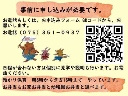 事前に申し込みが必要です。お電話もしくは、お申込みフォーム QRコードから、お願いします。