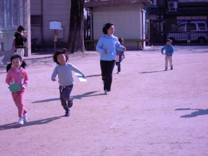 12月から寒い日もがんばって走ってきたマラソンの締めくくりとなるマラソン大会でした。今日は,学校の広い校庭をみんなで走りました。その後は,園長先生から表彰状をいただきました。みんなよくがんばりました。