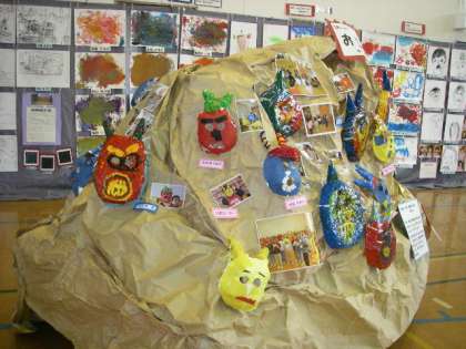 醒泉小学校の校内作品展と一緒に園児の作品も展示しました。子どもたちが、描いたり作ったりしている時,とても真剣で夢中で取り組んでいます。