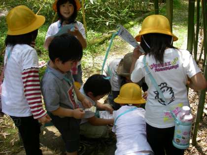 先週にはお天気を心配していたのですが,今日はとてもいい天気になりました。親子で触れ合うことと保護者同士の親睦を目的に出かけました。植物園内では地図をもって散策したり,水車や花を見たり,一緒にお弁当を食べたり楽しく過ごしました。とても素敵な思い出になったことでしょう。