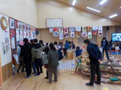 小学生も訪れてくれて、子どもたちは自分の作品だけでなく、他のクラスの展示についても丁寧に紹介していました。