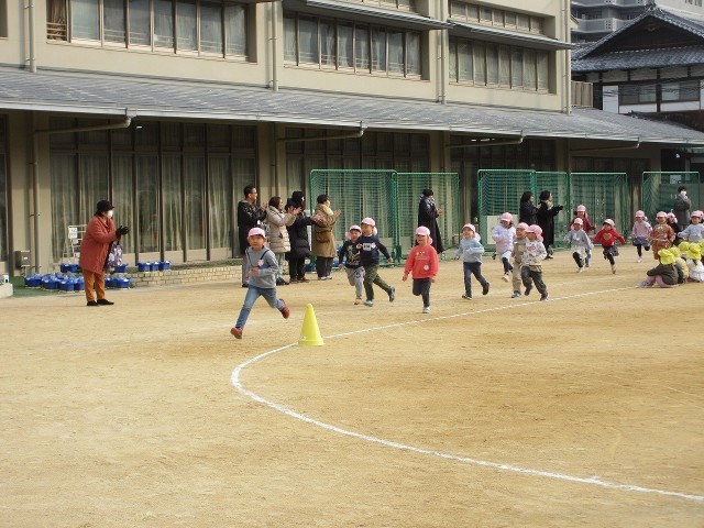 昨日、マラソン大会がありました。12月から毎朝続けて取り組んできたマラソンごっこ。昨日はお家の方に応援してもらいながら、学年ごとに走りました。「がんばれ~!」の声が力となり、一人一人が最後まで走り切りました。一生懸命走る姿や嬉しそうな顔がとても印象的でした。たくさんの拍手もいただき、とても嬉しかったですね。みんなが走り終わった後には、園長先生から賞状やメダルをもらい、自分の頑張りを感じた子どもたちでした。