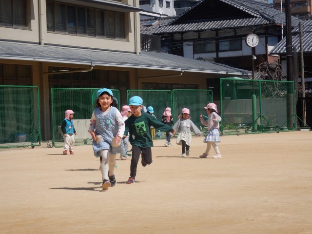 子どもたちは、幼稚園での最後の時間を思いきり楽しんでいます。