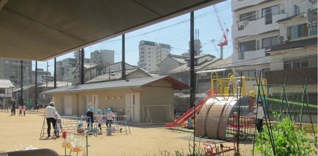園庭では、やわらかな日差しのもと元気いっぱいに遊ぶ子どもたちの姿が見られます。