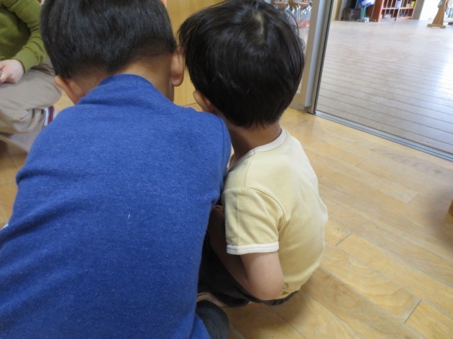 ちょっとドキドキするその場に、年長すみれ組の子どもたちがそっと寄り添ってくれました。