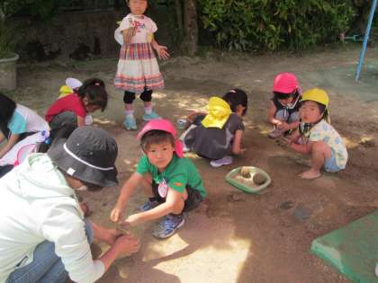 それぞれが自分のどろだんごを大事に作っています。