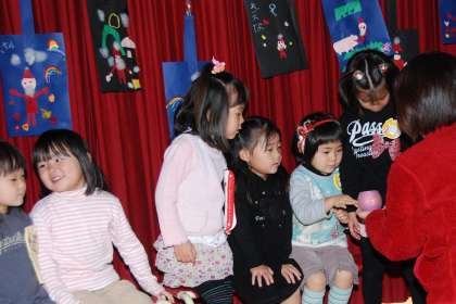 みんなでクリスマスの歌を歌ったり、先生たちの楽しい出し物を見たりしていると、
