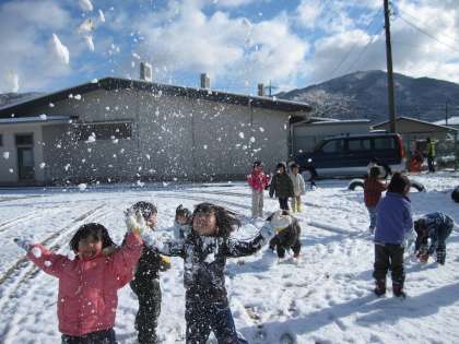 始業式が終わって外へ飛び出すと、さっそく雪合戦、雪だるまづくり、かまくら作りが始まりました。