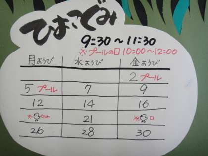 ひよこ組:2日(金)、5日(月)、7日(水)