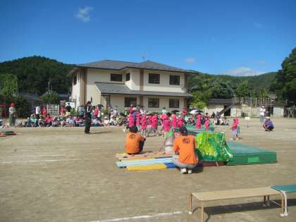 今日は、おうちの人がたくさん応援に来てくださる運動会。秋晴れの下、明徳小学校の広い運動場で元気な子どもたちの踊りや体操、かけっこが始まりました。