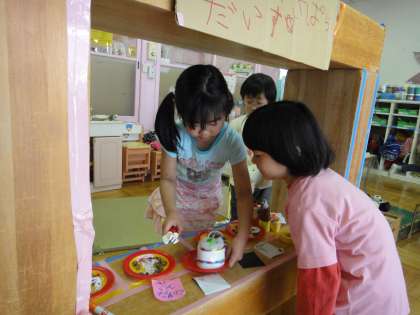 と,お店屋さんとお客さんになりきって遊ぶことを楽しんでいます。