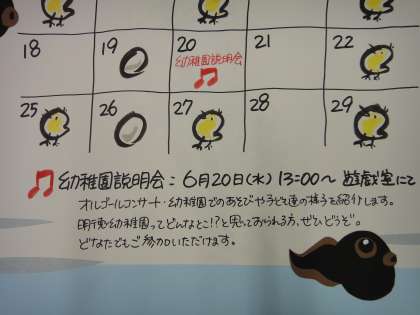 20日(水)は幼稚園説明会を開催いたします。ミニオルゴールコンサートも楽しんでいただきたいと思います。