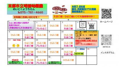10月のたまご組・ひよこ組お知らせ{改訂版)