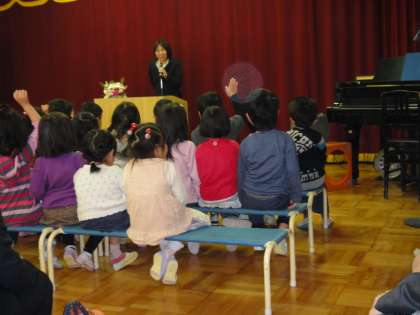 なったうれしさいっぱいに幼稚園の歌を歌ったり,園長先生のお話を