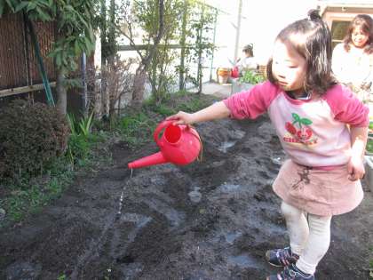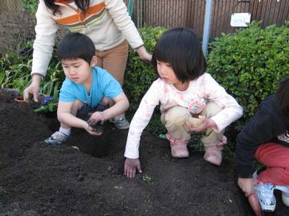そんなうさぎ組さん、今日はじゃがいもを植えました。