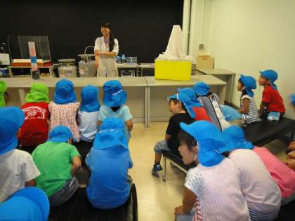 科学センターの様々な展示,実験室に目を輝かせて,実際に近くで見たり,触れたり,聞いたりして”科学のふしぎ”を感じることができました。子どもたちは終始ワクワクした様子で,「なんでだろう?」「ふしぎだな」という気持ちがたくさん伝わってきました。