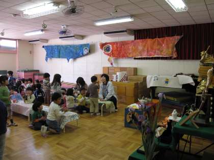 なぜ、こどもの日にこいのぼりをあげるようになったのか?というお話に興味をもって聞いていました。