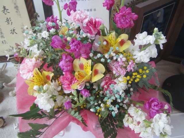今日は、第3学期終業式。はな組の子どもたちは、砂場のおもちゃをきれいに洗い、片付けました。そして、終業式では、園長先生から進級記念品をいただき、丁寧にお辞儀をしたり、少し恥ずかしそうに手を伸ばす姿が見られました。この1年、たくさん遊び、元気に過ごしてきた子どもたち。幼稚園にご協力いただいた保護者の皆さん。温かく見守ってくださっている地域の皆さん。ありがとうございました。