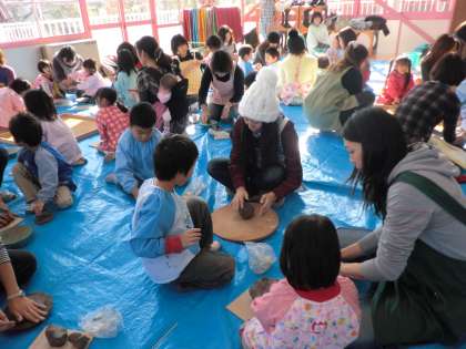 コップや大きなお皿,お父さんとお母さんのお茶碗,灰皿などとてもユニークで素敵な作品が出来上がりました。