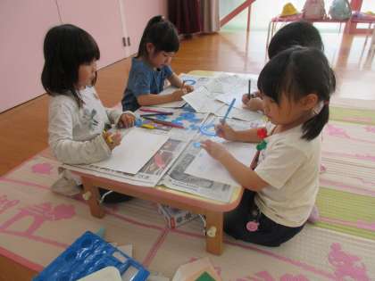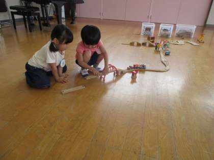 13日の預かり保育は「みんなで遊ぼう」でした。弁当の後,積み木で車を作ったり汽車レールで遊んだり,折り紙を折ったりして,思い思いの遊びを楽しんでいました。