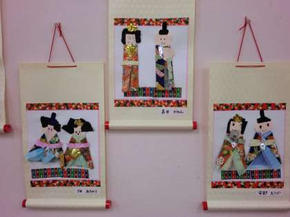 さくら組(4歳児)は,かけ軸ひなをつくりました。