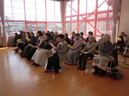 生活発表会で歌った歌や合奏を聴いていただいたり,一緒に「うれしいひなまつり」の歌を歌ったり,仲良しあそびをして楽しみました。