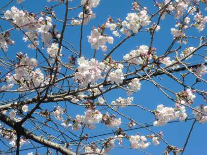 春の日差しをあびて幼稚園の桜の花が,きれいに咲いてきました。