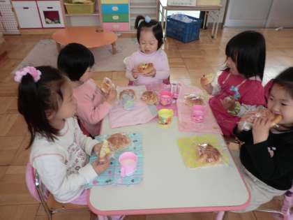 初めて食べるパンだけど,みんなと同じものを食べるって楽しいなぁと感じているようでした。牛乳は少し苦手だけど,「牛乳飲めたよ」と言ってくれた子どもたち,少しずつ牛乳に慣れていってくれればいいですね。