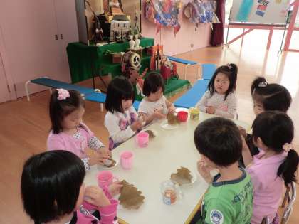 先生から空高く泳ぐこいのぼりのように,元気な子どもに育ってほしいというお話を聞いたり,こいのぼりの歌を一緒に歌ったりしました。