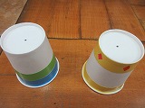 1 紙コップに絵をかいたり,色紙を貼ったりします。
