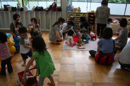たくさんの未就園児の子どもたちが遊びにやってきて,好きな遊びを見つけて楽しんでいました。