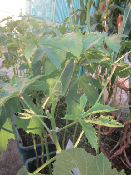 幼稚園のポップコーンは黄色い実をつけ始めています。オクラの実も大きくなりました。ピーマンもたくさんの実をつけています。ウサギやカメも元気です。子どもたちが来るのを待っていますよ。