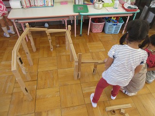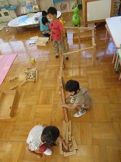 預かり保育の時間に,クーゲルバーンで遊ぶことが大好きなゆり組のAくん。