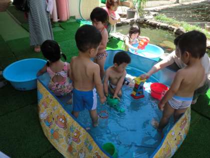 今日も猛暑日。子どもたちはプール遊びを楽しんだり,パネルシアターを楽しみました。