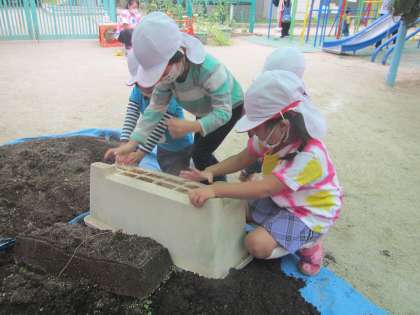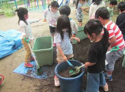 今週,年長児は夏野菜を育てる準備をしました。