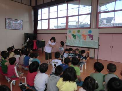 今日の誕生会のお楽しみは,なぞなぞ形式のお話でした。