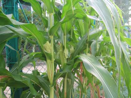 園で育てている野菜たちは,大きく生長しています。夏休み前には,小さかったトウモロコシの実や枝豆の粒が,かなり大きくなってきましたよ。枝豆はちょうど食べ頃になってきました。きゅうりやミニトマト,ピーマンも毎日収穫しています。