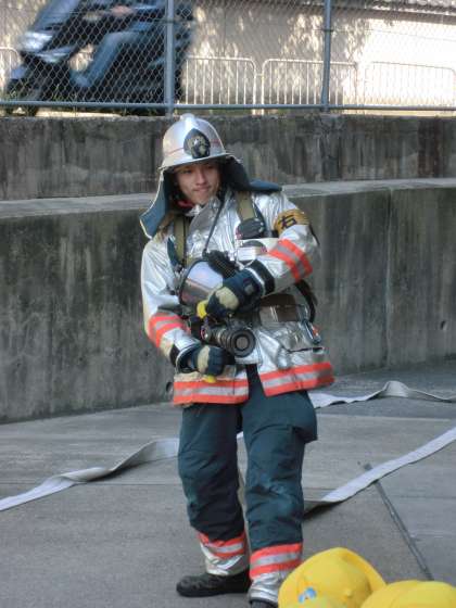 今日は消防自動車を見学してきました。ポンプ車の説明を聞いたり,防火服を着て放水する時のかっこいい姿を見せてもらったりしました。子どもたちも,目を輝かせて話を聞いていました。「大きくなったら消防士さんになりたい」と消防士さんにあこがれていた子どもがいました。