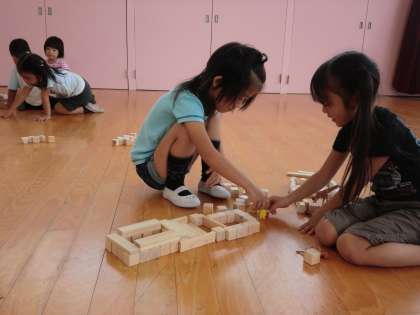 友達と相談しながら,思い思いの動物園をつくり,会話を弾ませて遊んでいます。