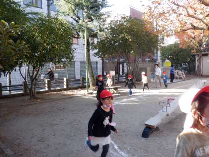 マラソンで体が温まると,一段と元気になり,活発に遊ぶ子どもたちです。