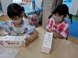 5歳児ゆり組は,もうすぐプールが始まるので,水遊びのおもちゃづくりを楽しみました。ペットボトルやトレイ,牛乳パック,ストロー,ホースなどをつかって,ジョロのようなものや,アメンボ,船など,試行錯誤しながらつくりました。つくった後は,早速たらいの水や水道の水で試したり,楽しんだりする姿が見られました。プール遊び楽しみだね!