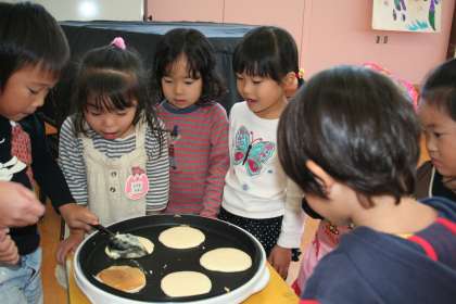 お友達のホットケーキが焼けるとみんな大歓声!!